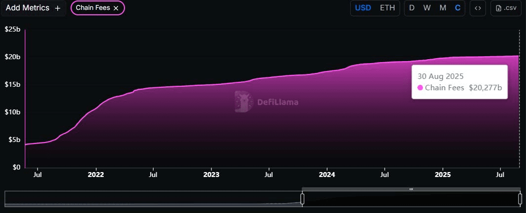 Das Netzwerk unterstützt Zehntausende von dezentralen Anwendungen. Seit seiner Gründung hat es über 20 Milliarden Dollar an Gebühren generiert! Ethereum funktioniert wie die Schweiz der digitalen Welt - ein neutraler Ort, an dem jeder sein Geschäft gegen eine geringe Gebühr entwickeln kann.