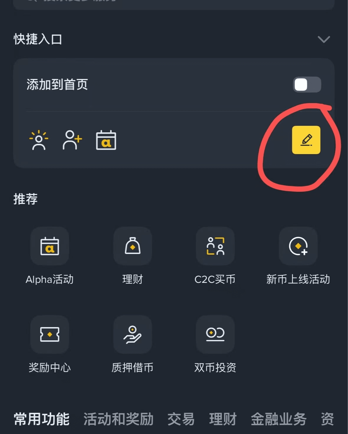 3、Klicken Sie im Schnellzugriffsbereich auf die Schaltfläche „Kleine gelbe Stift“, um Module zur Startseite hinzuzufügen