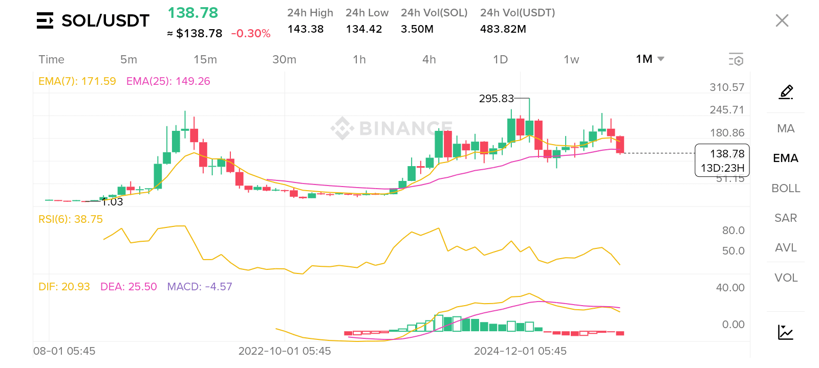 Aktuelle Marktdaten für SOL/USDT (rund $138,80) zeigen ein gemischtes Bild: