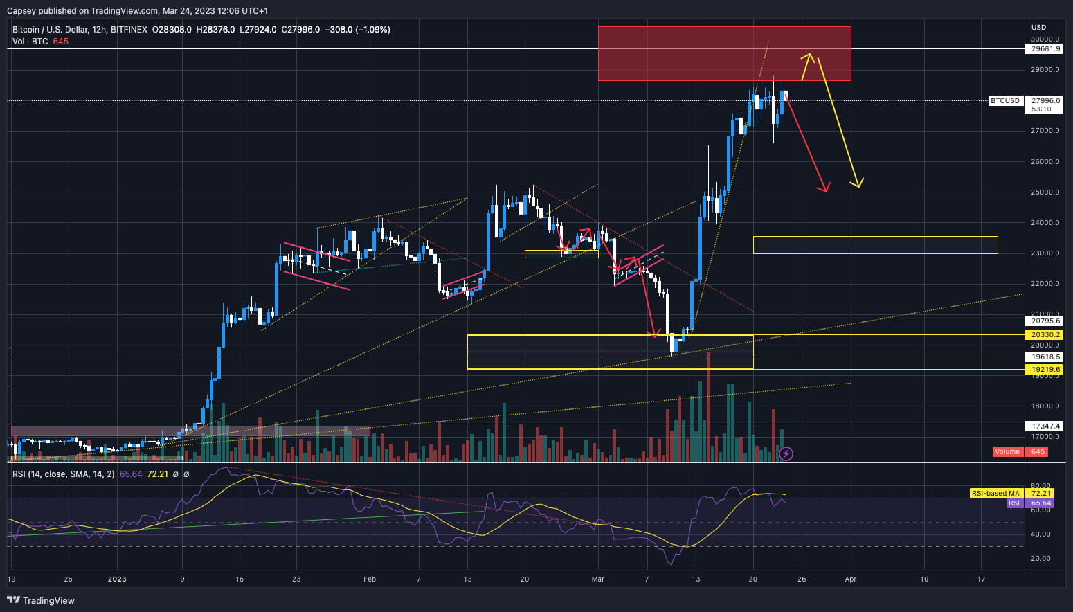 Ich bin hier wirklich hin- und hergerissen. Ich habe das Gefühl, dass wir hier oder im Bereich der roten Box ablehnen werden. Meine große Frage ist, ob wir kurzfristig höher steigen und einen Teil der roten Box füllen. Ich habe Shorts im mittleren bis späten Bereich von 28.000 $ gefüllt. Wenn wir in diesen Bereich zurückkehren (derzeit bei 28.020 $), füge ich möglicherweise noch etwas mehr Größe hinzu, da ich denke, dass ein Anstieg über 30.000 $ jetzt unwahrscheinlich ist. Im Moment bleiben wir weiterhin geduldig und warten darauf, dass sich der Short für uns auszahlt.
