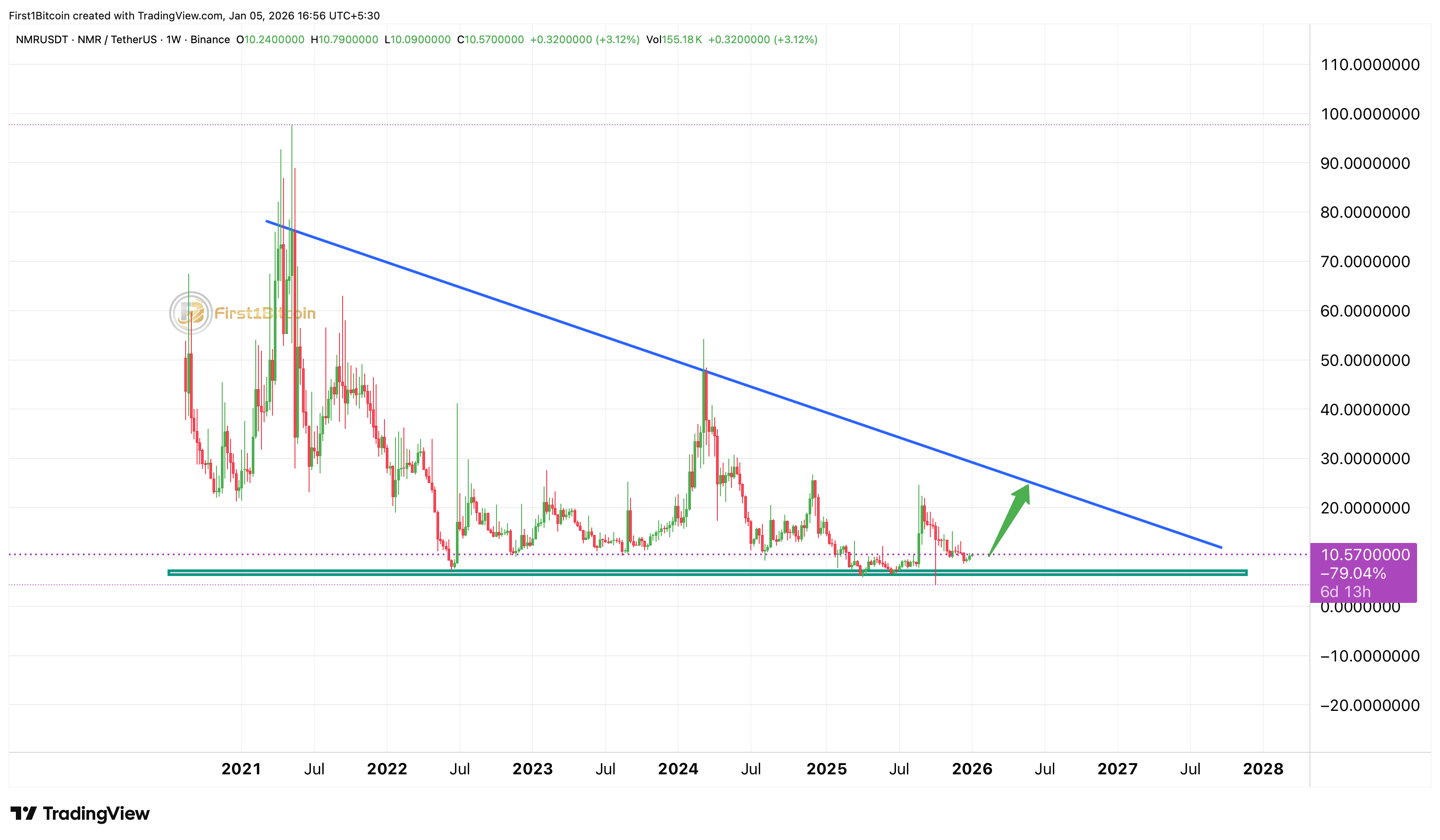#NMR (Numerai) hält nach einem mehrjährigen Abwärtstrend die langfristige Nachfrage aufrecht.