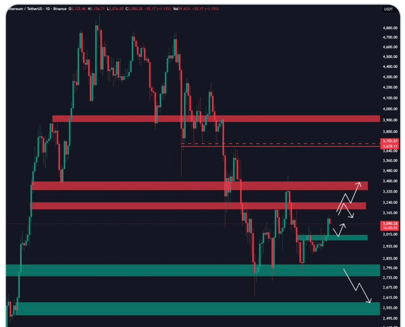Ethereum ist im Trend, während sich der Preis in der Nähe des $3.000-Niveaus konsolidiert, einem Bereich, den viele Händler mit vergangener Akkumulation vor starken Bewegungen assoziieren. Die Netzwerkaktivität bleibt hoch, mit kontinuierlicher Bereitstellung von Smart Contracts, aktiver Nutzung von Layer 2 und fortgesetzter Verwendung von ETH für NFT- und On-Chain-Zahlungen.