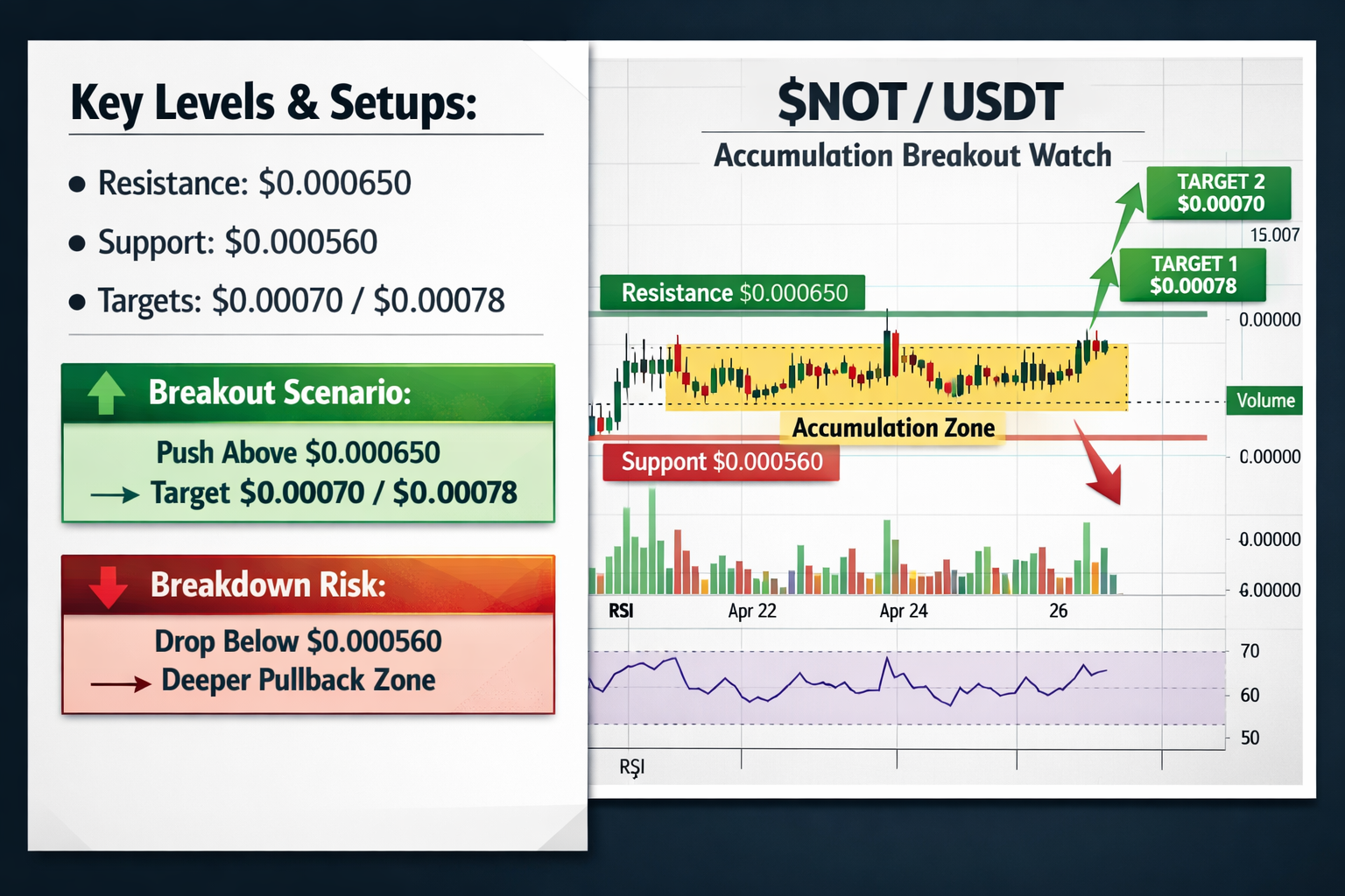 Heutiger Fokus: $NOT a Low-Price-, High-Volatilitäts-Coin, die langsam zu erwachen beginnt.