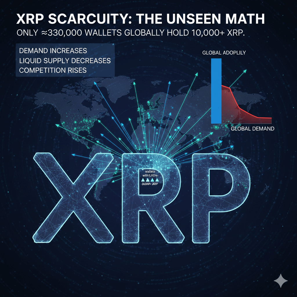 Laut On-Chain-Daten halten weltweit nur etwa 330.000 Wallets 10.000 XRP oder mehr. Das ist kein Vermutung oder eine Theorie – es ist eine messbare Blockchain-Statistik.
