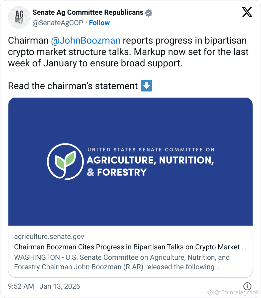 The US Senate Agriculture Committee has pushed its markup of the crypto market structure bill to the end of January, saying it needs more time to garner support for the legislation.