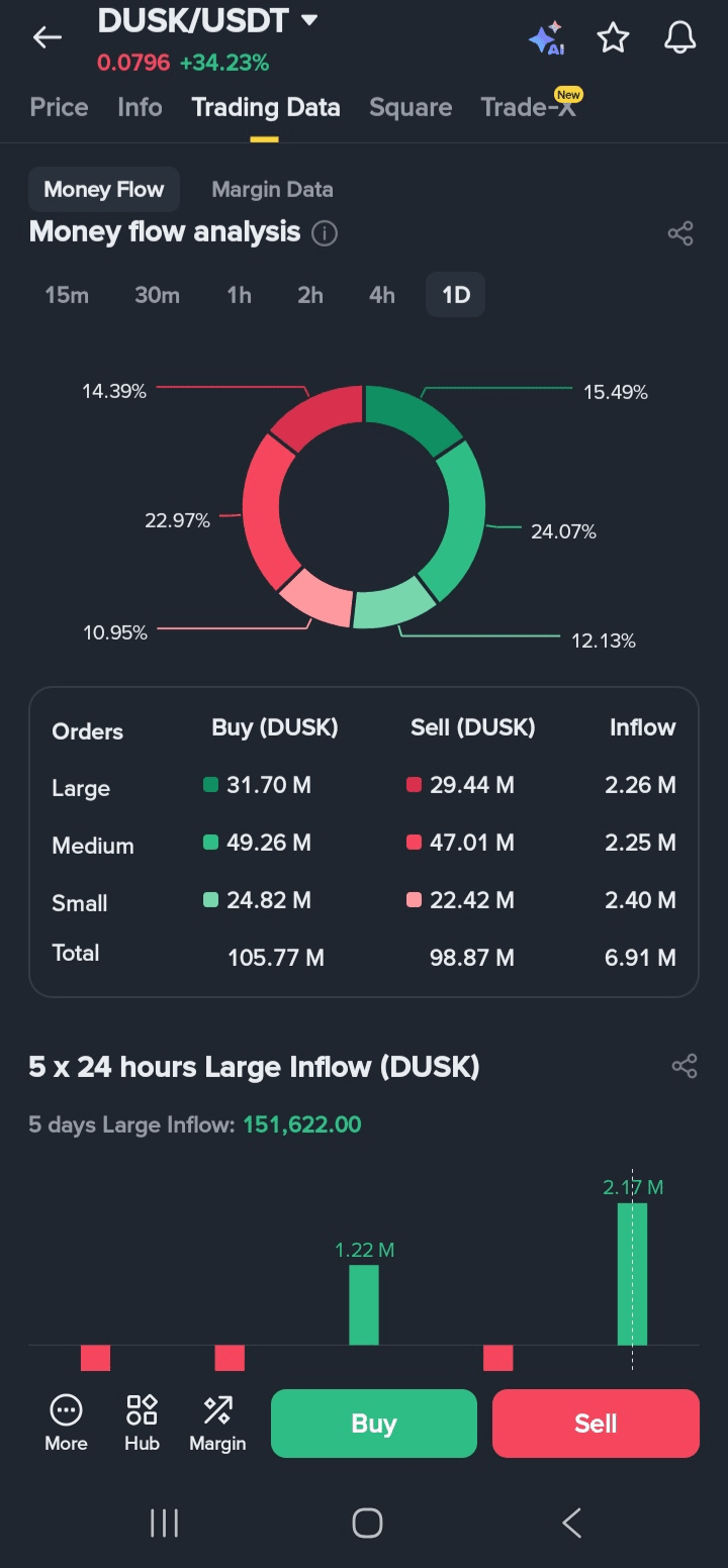 In der sich ständig weiterentwickelnden Landschaft von Kryptowährungen und Blockchain-Technologie haben sich nur wenige Projekte so spezialisiert und vielversprechend etabliert wie das Dusk Network. Stand 13. Januar 2026 hat das $DUSK -Token erhebliche Aufmerksamkeit erregt, insbesondere durch seinen kürzlichen Kursanstieg. Screenshot-Aufnahmen von Handelsplattformen wie Binance zeigen, dass DUSK/USDT etwa bei 0,079 USD notiert, was einer beeindruckenden Steigerung um 34 % innerhalb kurzer Zeit entspricht. Diese Dynamik, kombiniert mit starken Geldflussindikatoren und positiven On-Chain-Metrik, deutet auf wachsendes Interesse von Investoren an einem Projekt hin, das nicht einfach nur eine spekulative Anlage ist, sondern eine grundlegende Schicht für regulierte, datenschutzorientierte Finanzen darstellt. In diesem ausführlichen Artikel werden wir die Entstehung, Technologie, Marktbedingungen und zukünftigen Perspektiven des Dusk Network untersuchen und analysieren, warum es möglicherweise für nachhaltiges Wachstum in den kommenden Jahren prädestiniert ist.