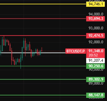 Wenn heute die Position 91200 unterschritten wird, bedeutet dies, dass die Käufer nicht mehr stark genug sind, um weiter zu steigen, achte auf die Unterstützungsniveaus unten in der Nähe von 90250-89300-88150!\u003ct-19/\u003e