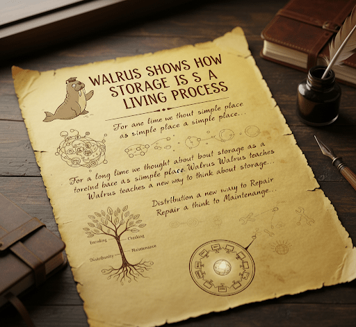 Die Hauptidee ist, dass die Speicherung in Walrus ein fortlaufender Prozess ist. Sie wird kodiert, verteilt, überprüft, repariert und ständig gewartet. Dies unterscheidet es von traditionellen Systemen, bei denen davon ausgegangen wird, dass Daten sicher sind, nur weil sie irgendwo gespeichert sind. Walrus stellt sicher, dass die Daten im Laufe der Zeit tatsächlich nutzbar sind.