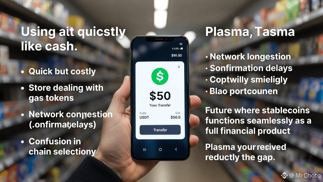 You discover the unsettling reality when you attempt to send stablecoins "like cash" for the first time: although stablecoins are already quick, the rails they run on aren't necessarily designed for payments. One day, a $50 USDT transfer can be quick, and the next, it might be oddly costly. In principle, a store can accept stablecoins, but in reality, they might have to deal with issues like gas tokens, network congestion, confirmation delays, and whether the customer even knows which chain to use. It doesn't feel like money that "just works." It seems like a financial product that still requires technical supervision.