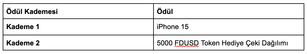 Berechtigte Teilnehmer, die zum Erhalt der iPhone 15-Belohnung berechtigt sind, werden innerhalb einer Woche nach Ende der Aktion über die mit ihrem Binance-Konto verknüpfte E-Mail-Adresse kontaktiert, um die für die Zustellung der Belohnungen erforderlichen Informationen zu sammeln. Durch die Beantwortung der E-Mail erklärt sich der Nutzer mit der Weitergabe seiner persönlichen Daten, einschließlich seines Namens, seiner Adresse und anderer für die Zustellung der Prämien notwendiger Daten, einverstanden. Alternativ können teilnahmeberechtigte Teilnehmer, die den iPhone 15-Preis gewinnen, die Möglichkeit erhalten, anstelle des iPhone 15 eine Token-Geschenkkarte im Wert von 1.757 FDUSD zu wählen.