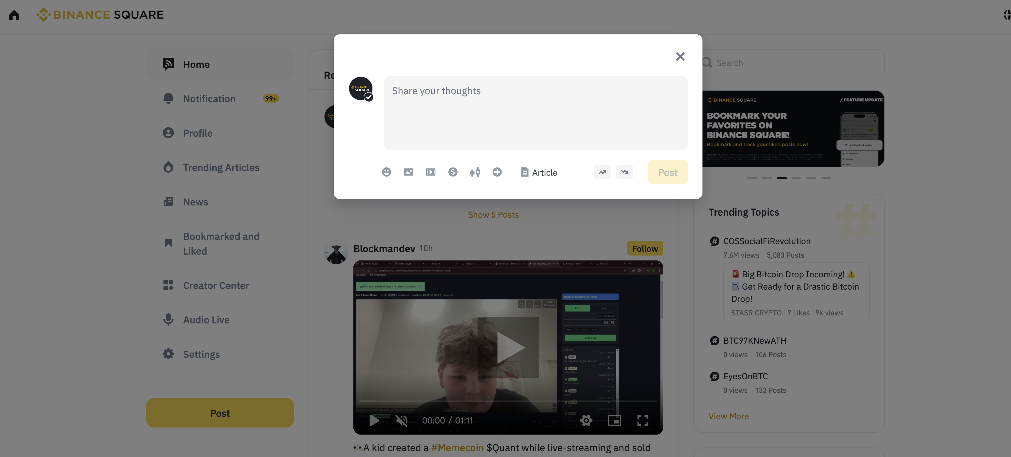 Sie können Inhalte entweder über die Binance-App oder die Website erstellen.