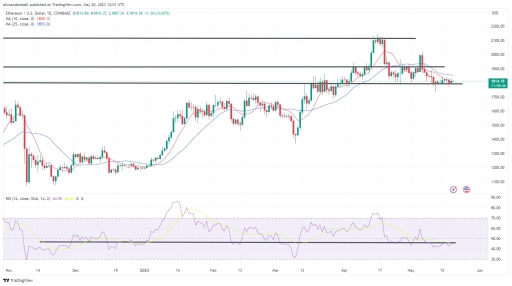 ETH/USD erreichte früher am Tag einen Höchststand von 1.826,19 $, weniger als 24 Stunden nachdem es fast unter die Marke von 1.800 $ gefallen war.