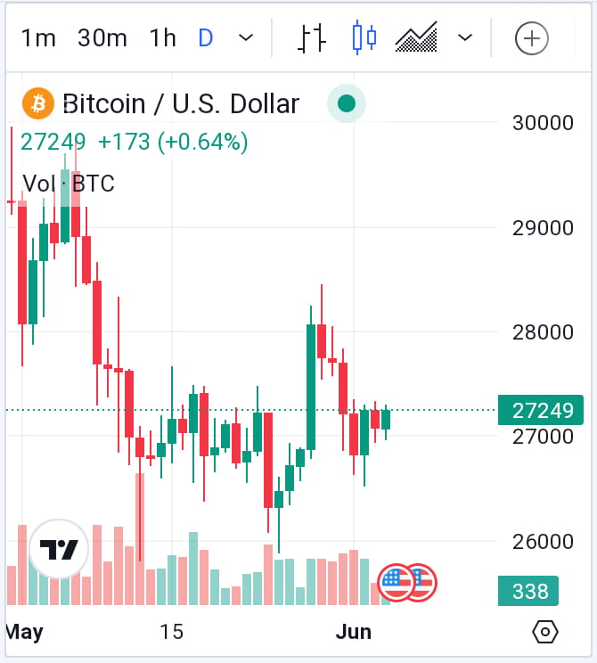 Nach einem Höchststand von 27.386,99 $ am Dienstag fiel BTC/USD früher in der heutigen Sitzung auf einen Tiefstand von 26.671,98 $.