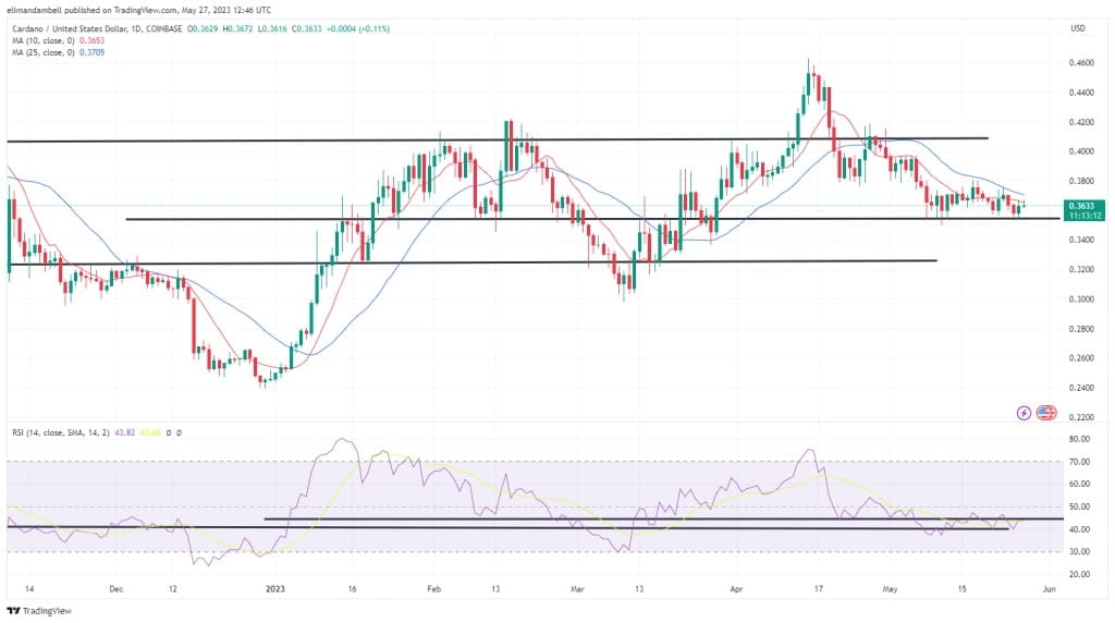 ADA/USD erreichte früher in der heutigen Sitzung ein Intraday-Hoch von 0,3667 $, nachdem es am Freitag auf ein Tief von 0,3564 $ gefallen war.