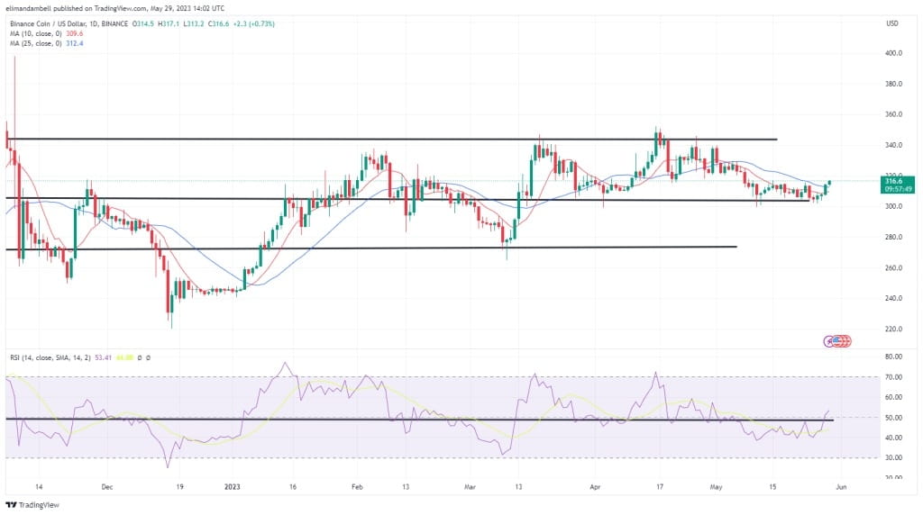 Durch diesen Anstieg erreichte BNB seinen höchsten Stand seit dem 9. Mai, als der Token über 320,00 $ gehandelt wurde.