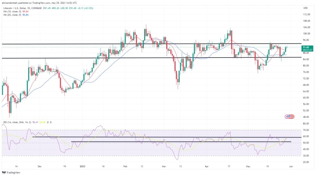 Dieser Schritt hat dazu geführt, dass Litecoin auf die wichtige Widerstandsmarke von 93,00 $ geklettert ist, die zuletzt am 23. Mai erreicht wurde.
