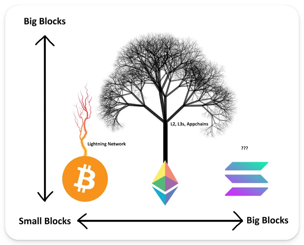 In der heutigen Zeit manifestiert sich die Debatte zwischen Small-Block und Big-Block weiterhin in der Debatte zwischen Ethereum und Solana.