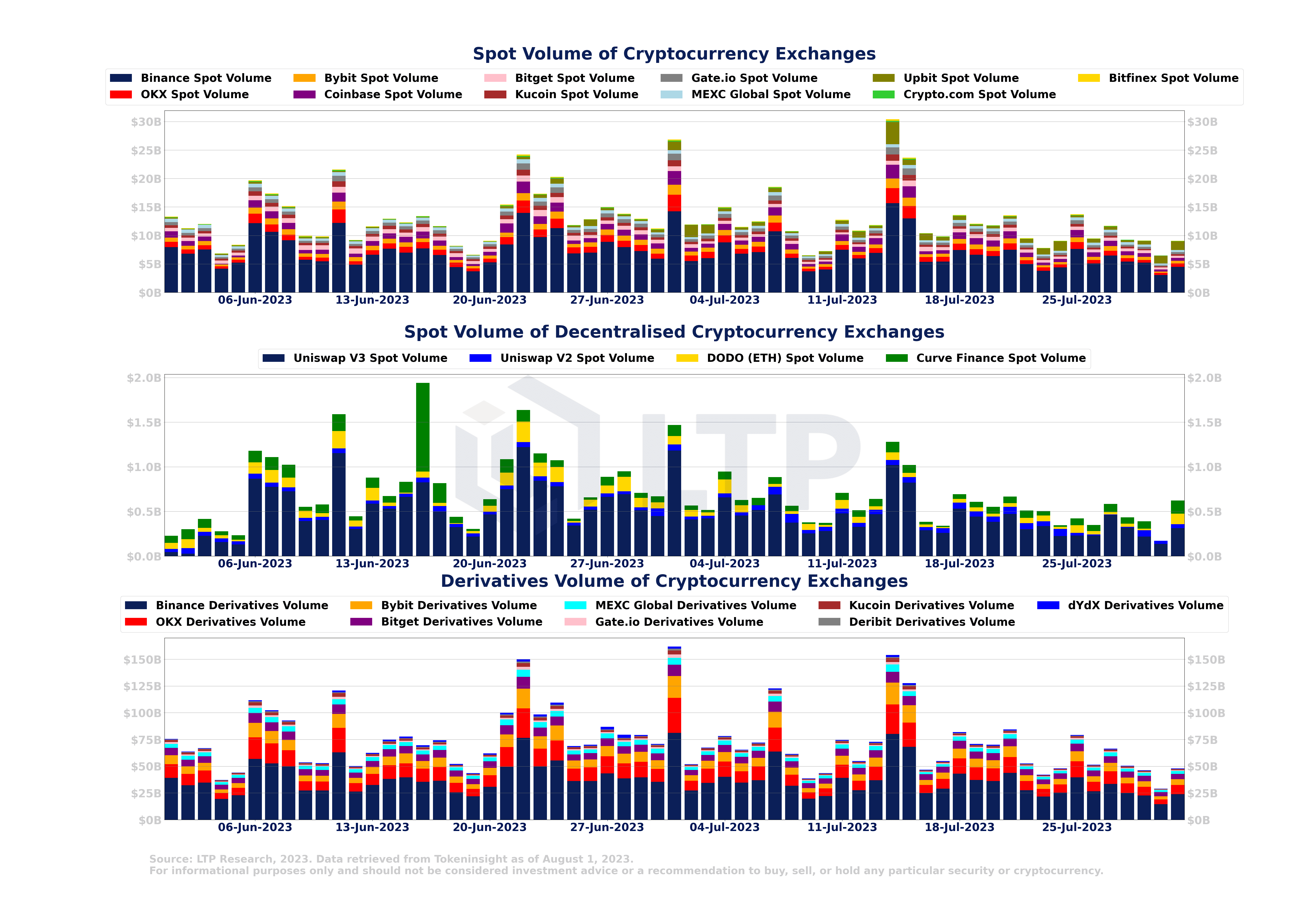 2.4 Im Monat Juli war ein Rückgang des Handelsvolumens an Kryptowährungsbörsen zu verzeichnen, was als Symptom eines allgemeineren Abnahme der Marktdynamik und des Anlegerengagements interpretiert werden könnte.