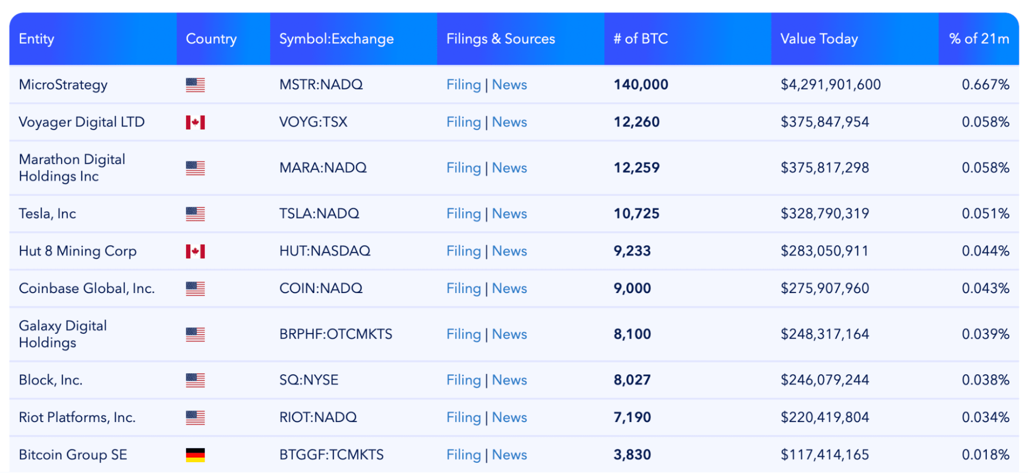 Viele große Unternehmen sehen das Potenzial für langfristige Investitionen in Kryptowährungen. Hier ist eine Liste der zehn größten Bitcoin-Investoren unter den börsennotierten Unternehmen: