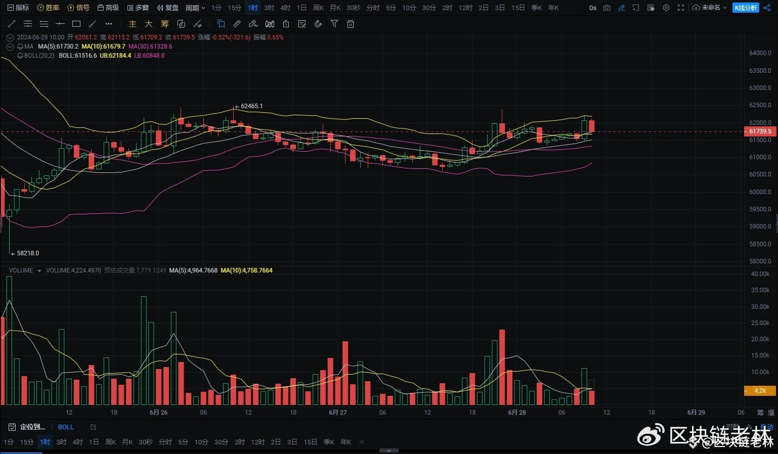 • 高位压制:62600。此位置是目前的上行阻力,需要密切关注。