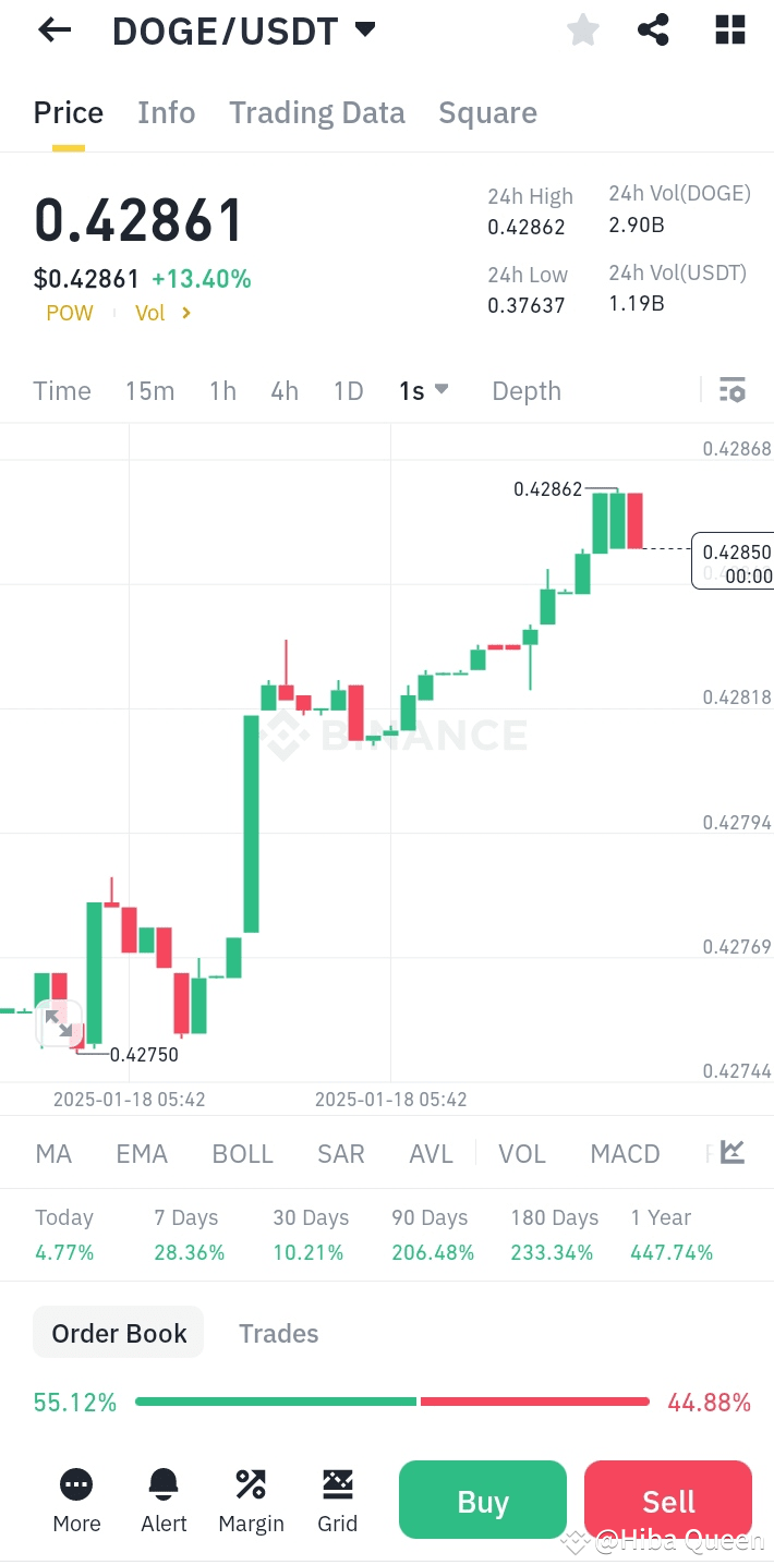 High trading volumes (like the 2.9B $DOGE in the chart) suggest strong momentum. If the volume starts dropping, the rally may lose strength.