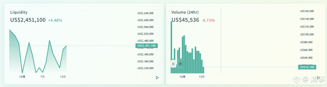 Conflux eSpace上的去中心化交易所Swappi的流动性、成交量变化不大。