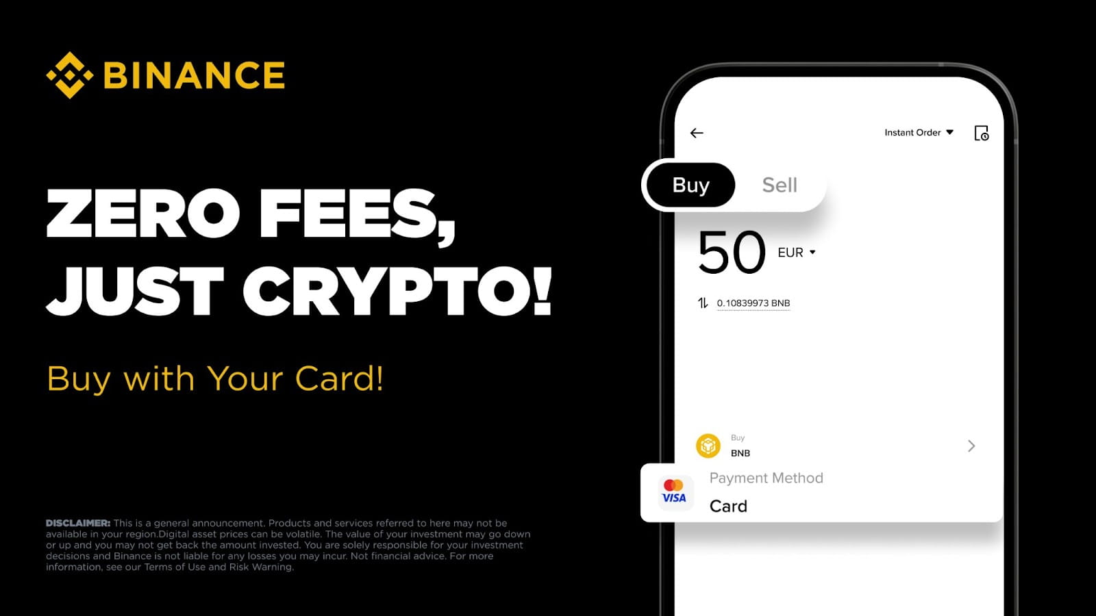 Binance is launching a limited-time promotion! During the Promotion Period, all eligible users can now buy crypto with zero fees using cards.