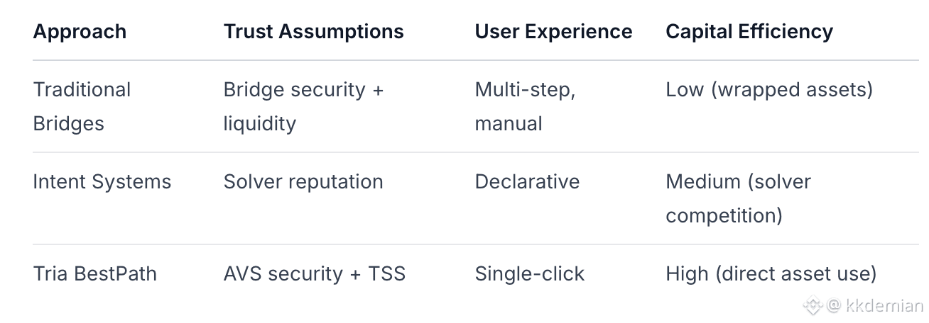 Technical Differentiation: Unlike traditional bridges that create wrapped assets or require manual chain switching, BestPath enables direct asset utilization across chains without abstraction layers. The system uses TSS-based execution so users never touch bridges, gas, or token approvals while maintaining full self-custody.
