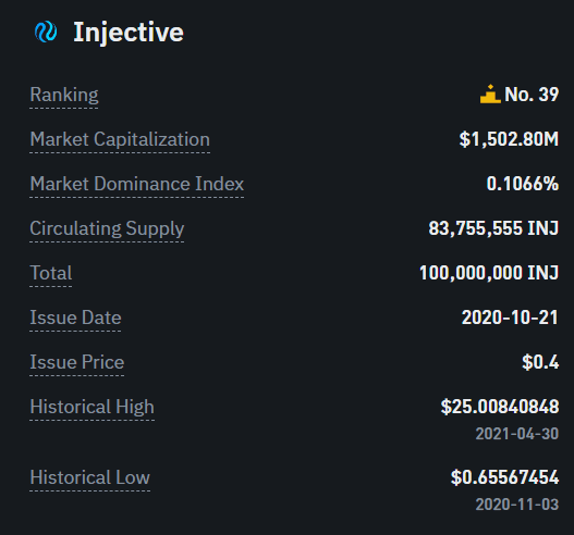 - INJ's circulation supply is 83%