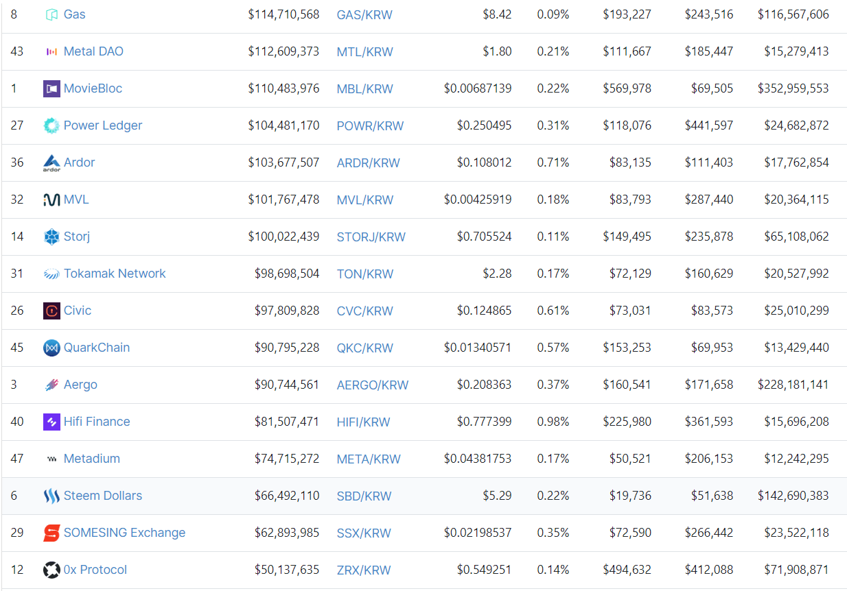 (Note, Marketcap displays the conversion from KRW to $ so it is not correct, please check at CMC or Binance)