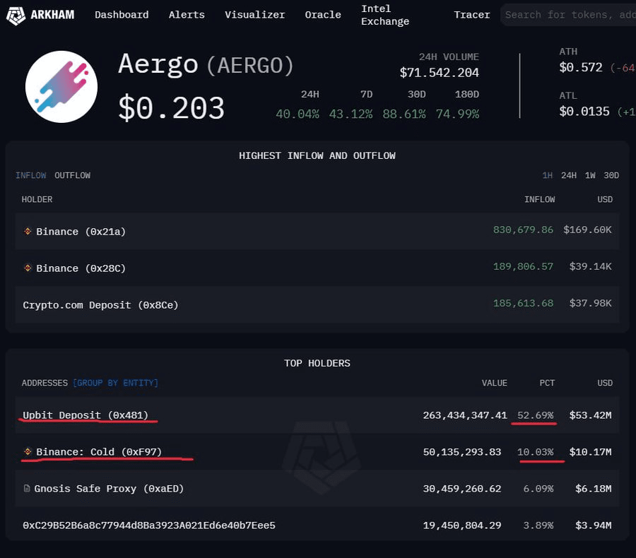 For example: $AERGO: Upbit Deposit 52%, Binance Cold wallet 10%