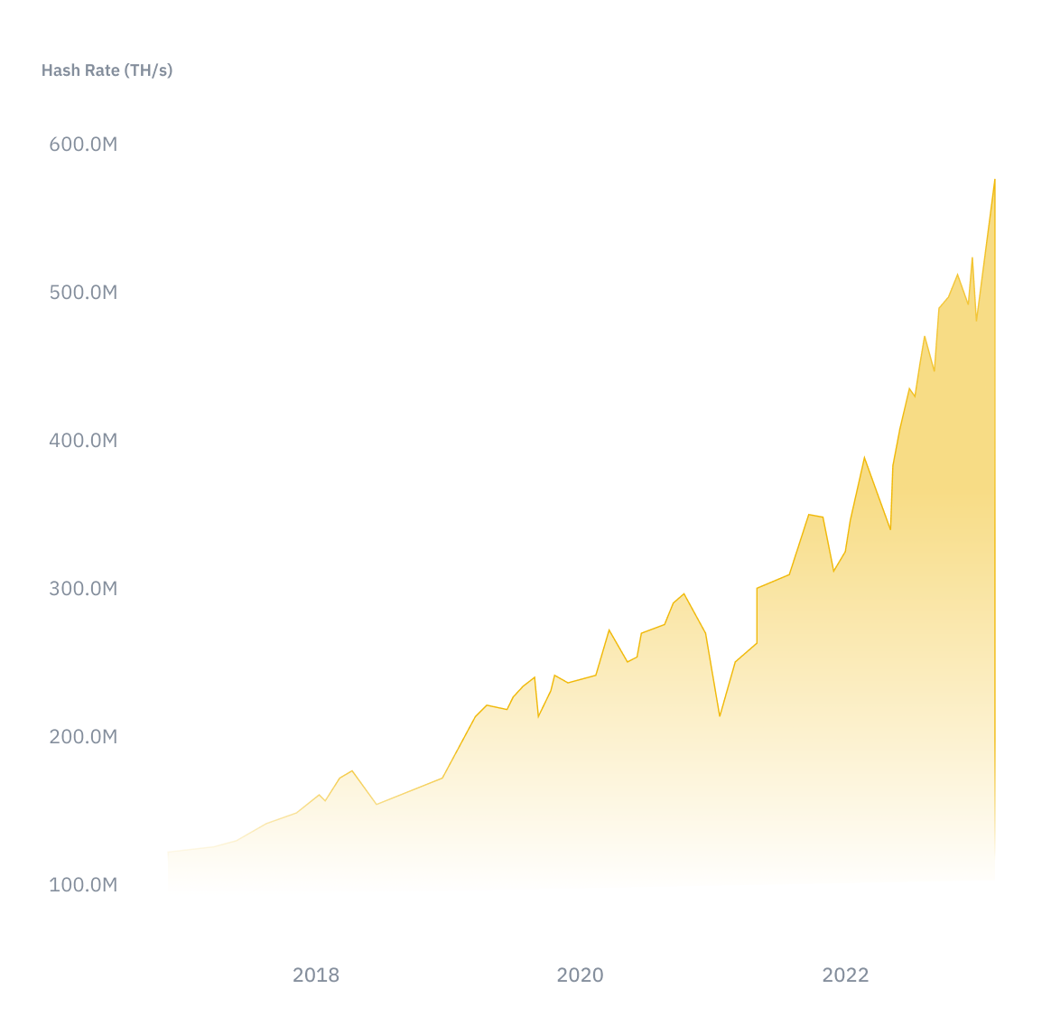The milestones of Bitcoin's hash rate expansion underline the monumental scale of the network's computational power. The hash rate surpassed:
