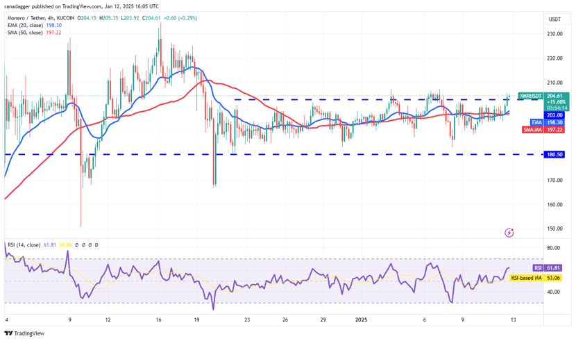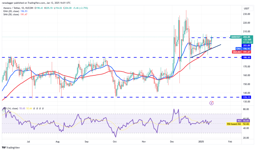 XMR has broken above $203 and is heading toward $220 or $225. However, if the price slips below $193, the range between $180 and $207 could persist