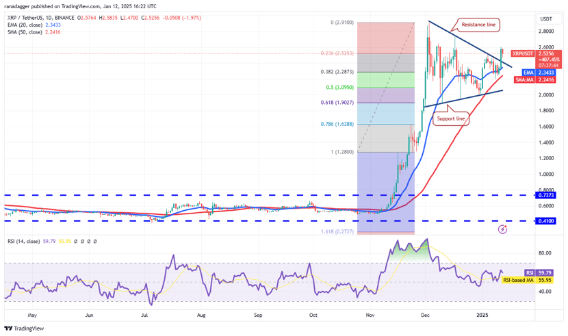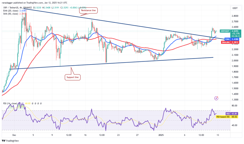 XRP broke out of a symmetrical triangle on Jan. 11, signaling bullish momentum. If it stays above $2.60, it could climb to $2.91, with a long-term target of $4.84.