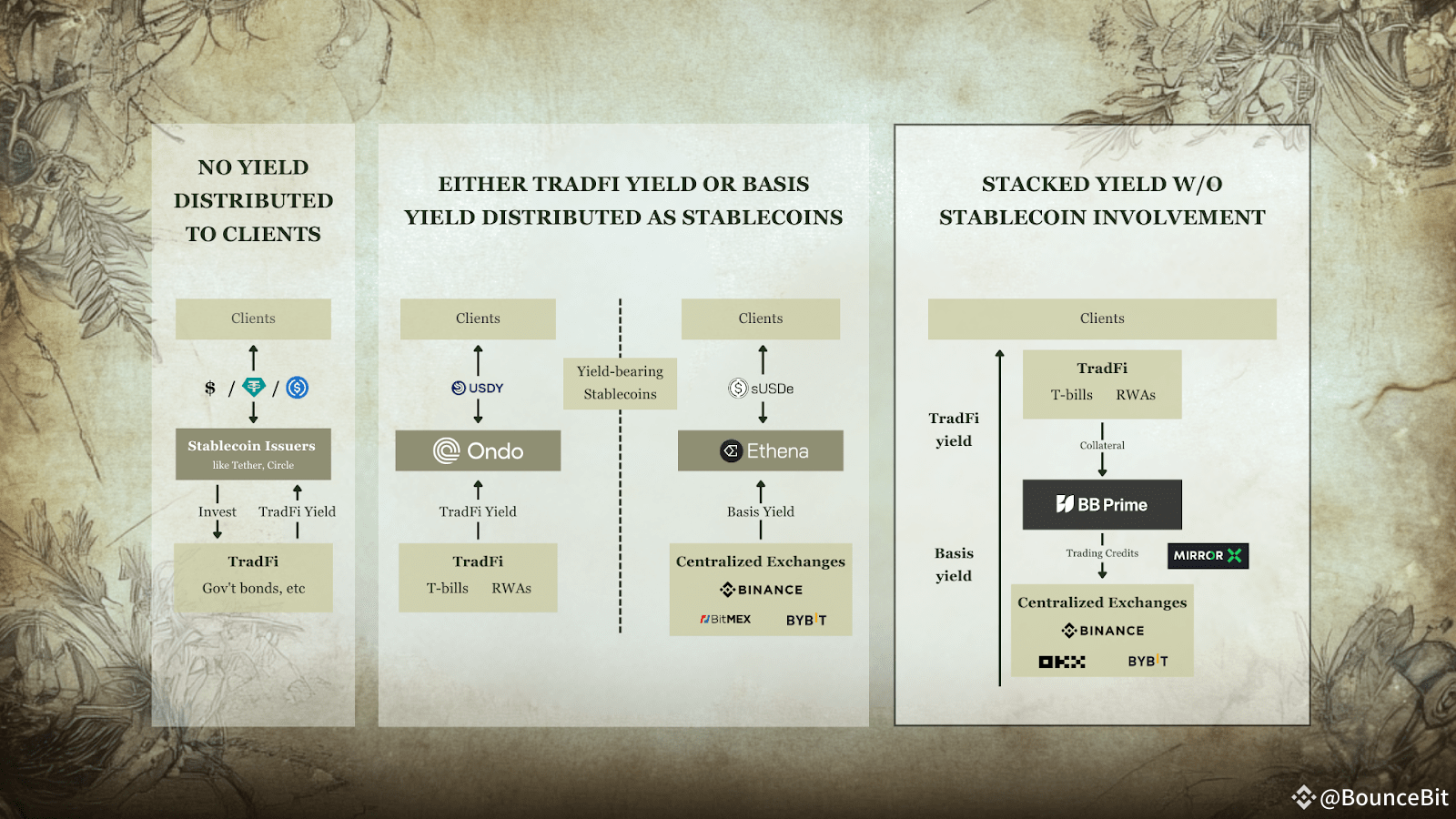 The solution lies in bypassing stablecoins entirely. By directly integrating tokenized treasuries and money market funds (like BlackRock's BUIDL or Franklin Templeton's BENJI) with liquidity venues through BounceBit, we can unlock liquidity, enhance capital efficiency, and minimize friction for TradFi onboarding.