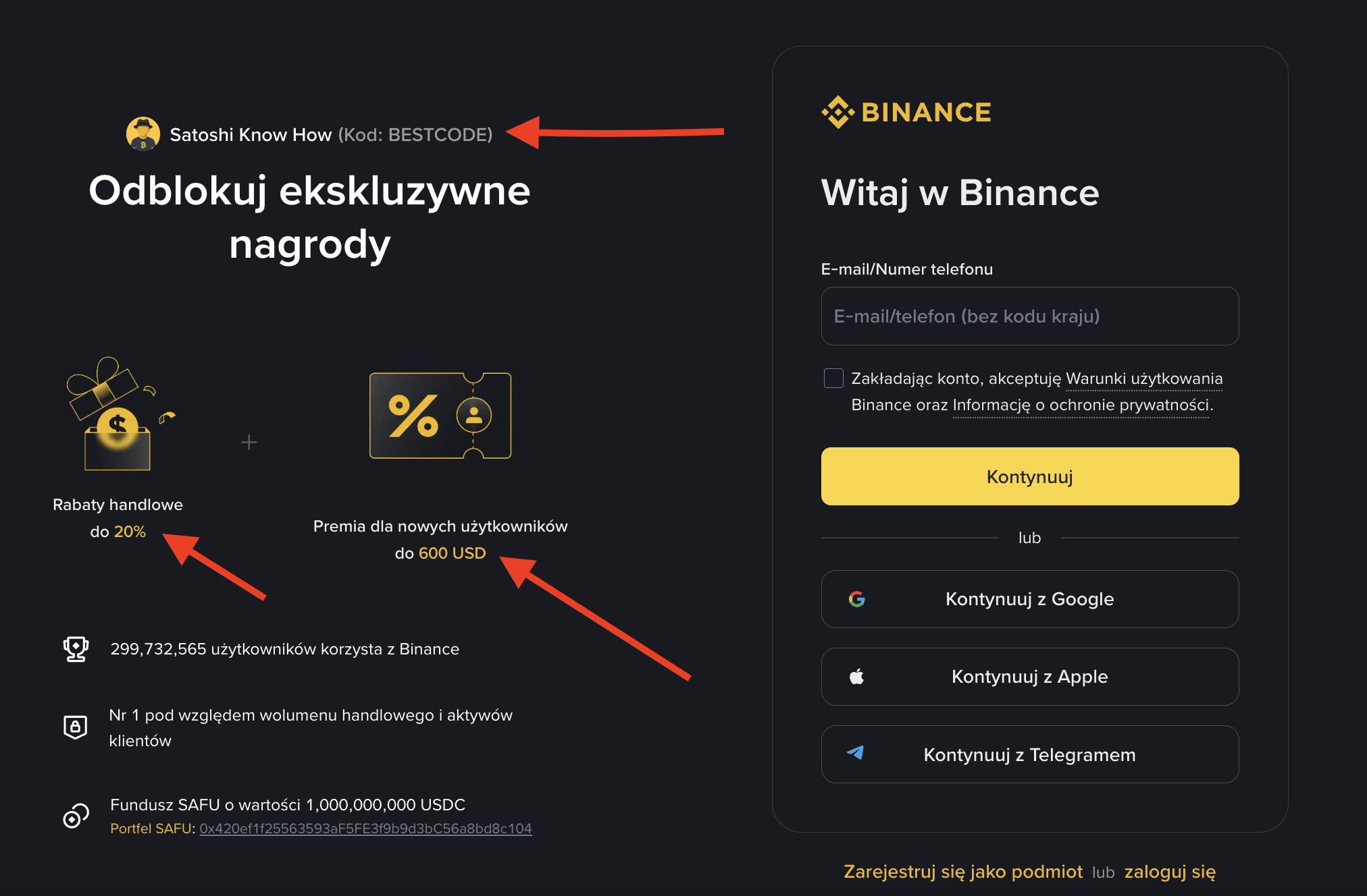 In short: To claim the Binance bonus, register using this link or enter the referral code: BESTCODE in the "Referral ID" field.