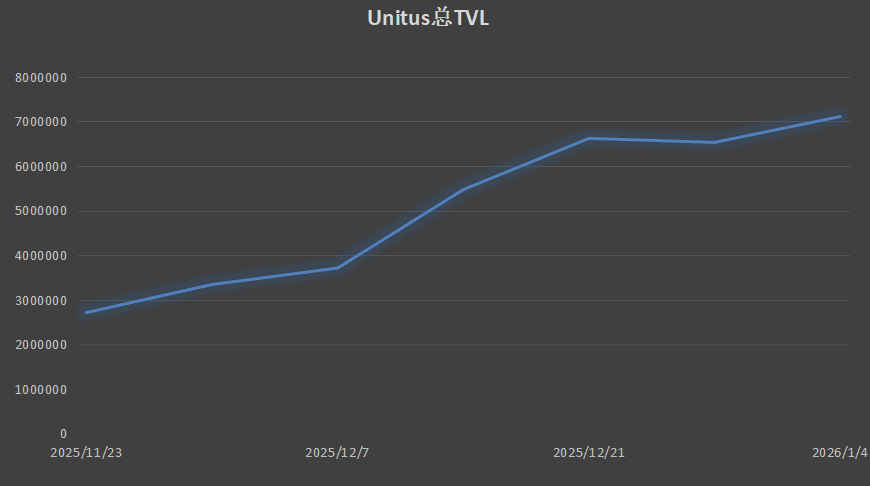 The total borrowing amount of the decentralized lending platform Unitus on Conflux eSpace is $7.11 million, showing steady growth over the past two months.