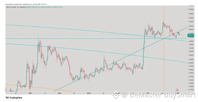 $XRP pulls back to a major multi-year trendline intersection near $2.05-$2.15, testing whether historical price patterns will continue guiding the market's next move.