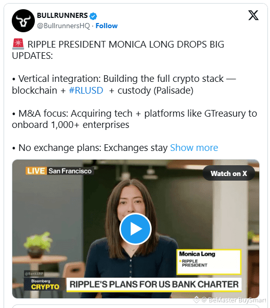 $XRP BullRunners founder Nick Anderson recently drew attention to strategic updates shared by Ripple President Monica Long, outlining how the company is positioning itself for the next phase of institutional adoption in digital assets.