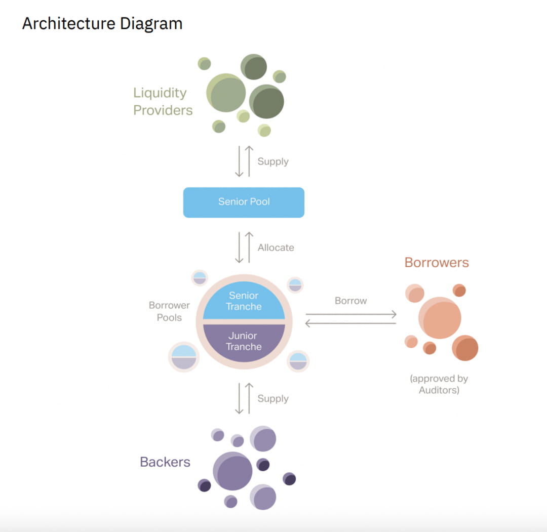 Goldfinch is a decentralized protocol for crypto lending without cryptocurrency collateral. The Goldfinch protocol has four core participants: borrowers, backers, liquidity providers, and auditors. Unlike other protocols, Goldfinch attempts to establish a unified risk asset (RWA) associated with real assets. All assets in the premium asset pool face the same risk.