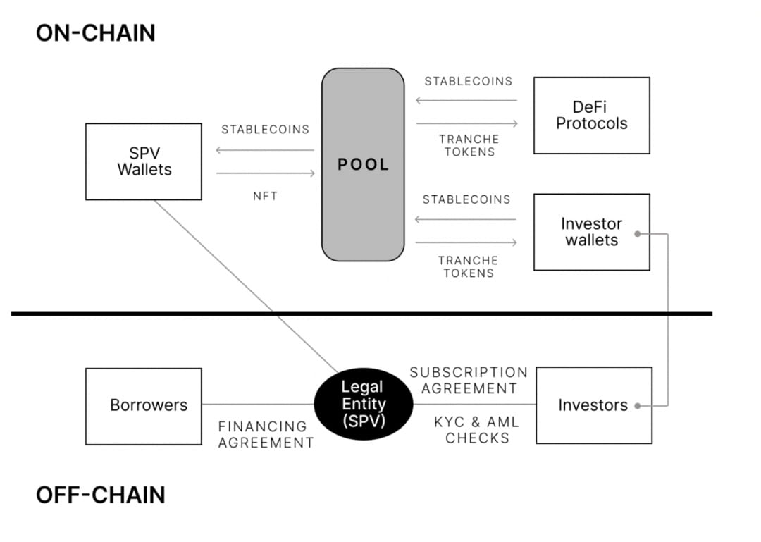 As a pioneer in the RWA lending industry, Centrifuge adopts both on-chain and off-chain structures to reduce credit risk. In the off-chain structure, it has established an SPV structure, and the collateral will be easily liquidated when a default occurs. It uses centralized KYC and AML services to comply with regulations in different countries. In addition to the signatures and transaction records on the chain, investors can also sign a subscription agreement with the issuer.