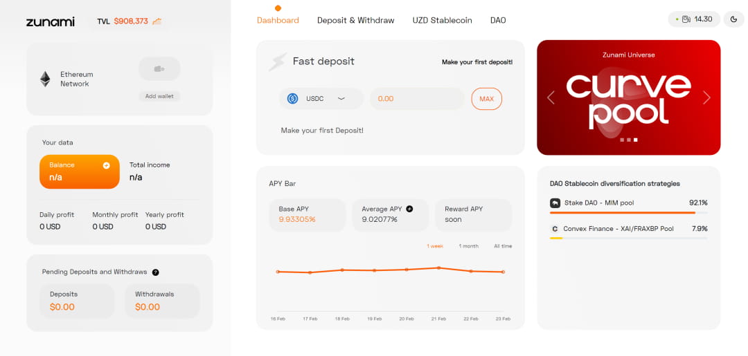 The Zunami protocol is a platform that distributes stablecoins to users. The main idea behind it is to create a simple, profitable and absolutely safe alternative to bank deposits. At the same time, the Zunami protocol eliminates the challenges of users managing their own assets, making it easier for users to focus on growing their wealth in the decentralized financial ecosystem. In the process of development, Zunami attempts to bridge the gap between traditional finance and DeFi, and tries to create more beneficial solutions for stablecoin holders.