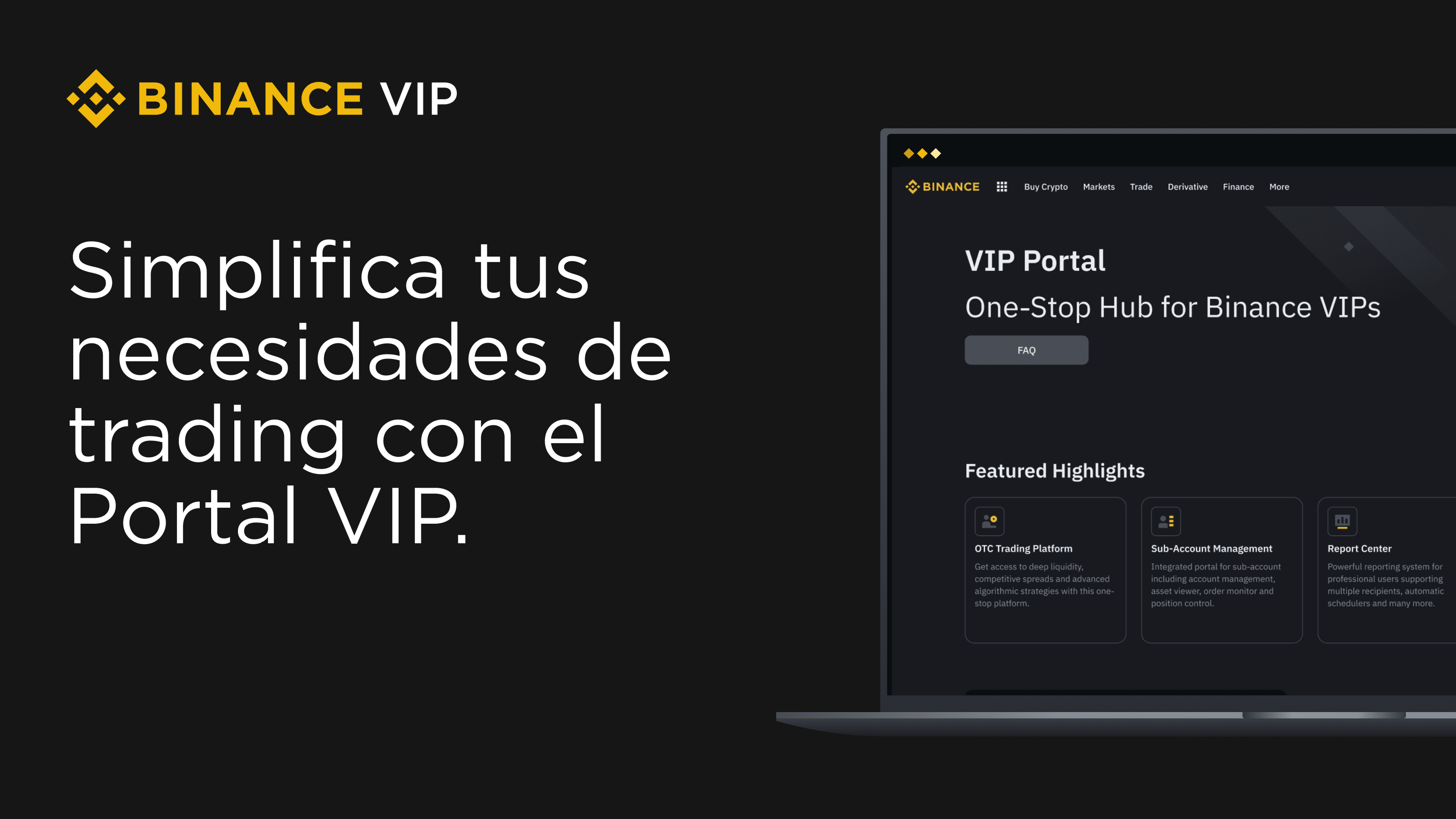 Si te unes al programa VIP de Binance, también podrás acceder al portal VIP, un centro único exclusivo para los usuarios VIP de Binance para optimizar todas tus necesidades de trading y gestionar tus activos digitales de manera eficiente, con paneles de control personalizados, análisis avanzados, datos e informes, y mucho más.