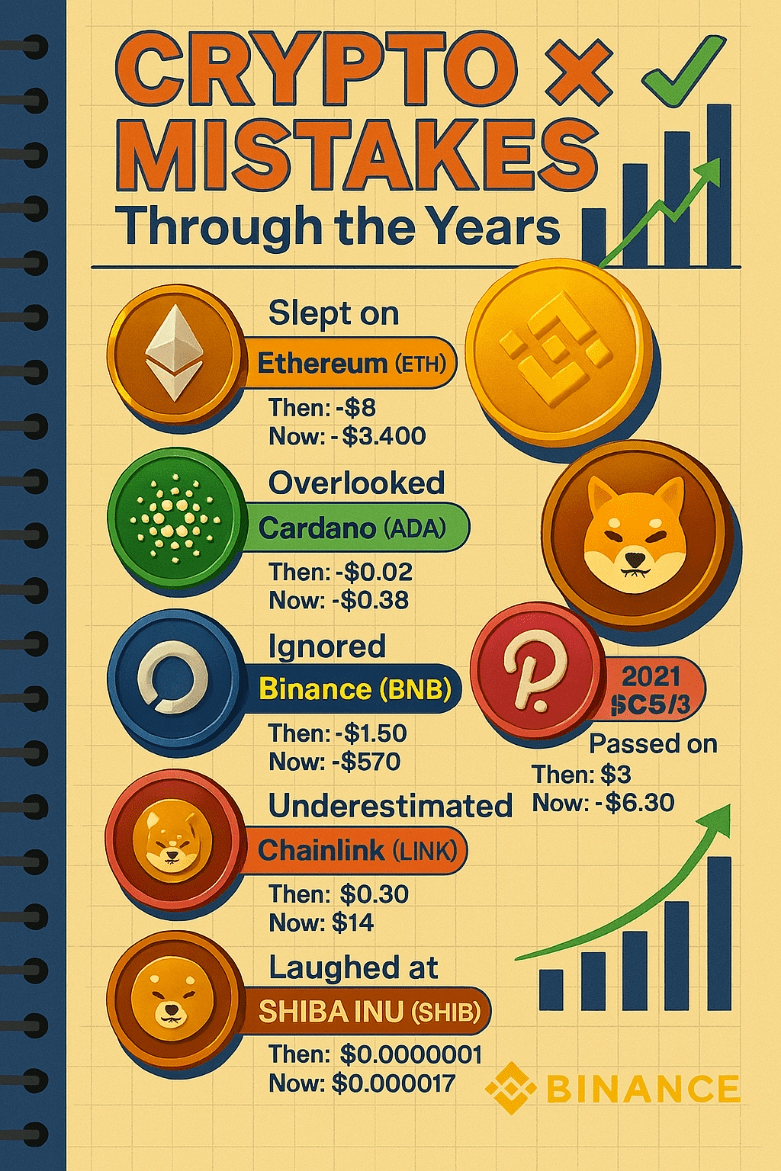 En cripto, las oportunidades perdidas son a menudo las más caras. Una mirada al pasado muestra cuántos tokens innovadores fueron desestimados—hasta que explotaron. Desde Ethereum en 2016 hasta SHIBA en 2021, la historia tiene la costumbre de recompensar la convicción temprana y castigar la duda tardía.