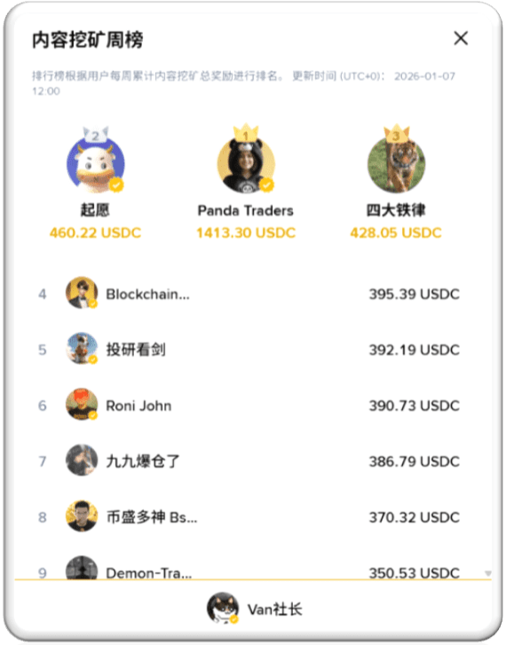 Liquidación más estable y atractiva: Las recompensas se envían directamente en USDC, ¡cada viernes a tiempo! No te preocupes por la volatilidad de las monedas, lo que importa es asegurar las ganancias.