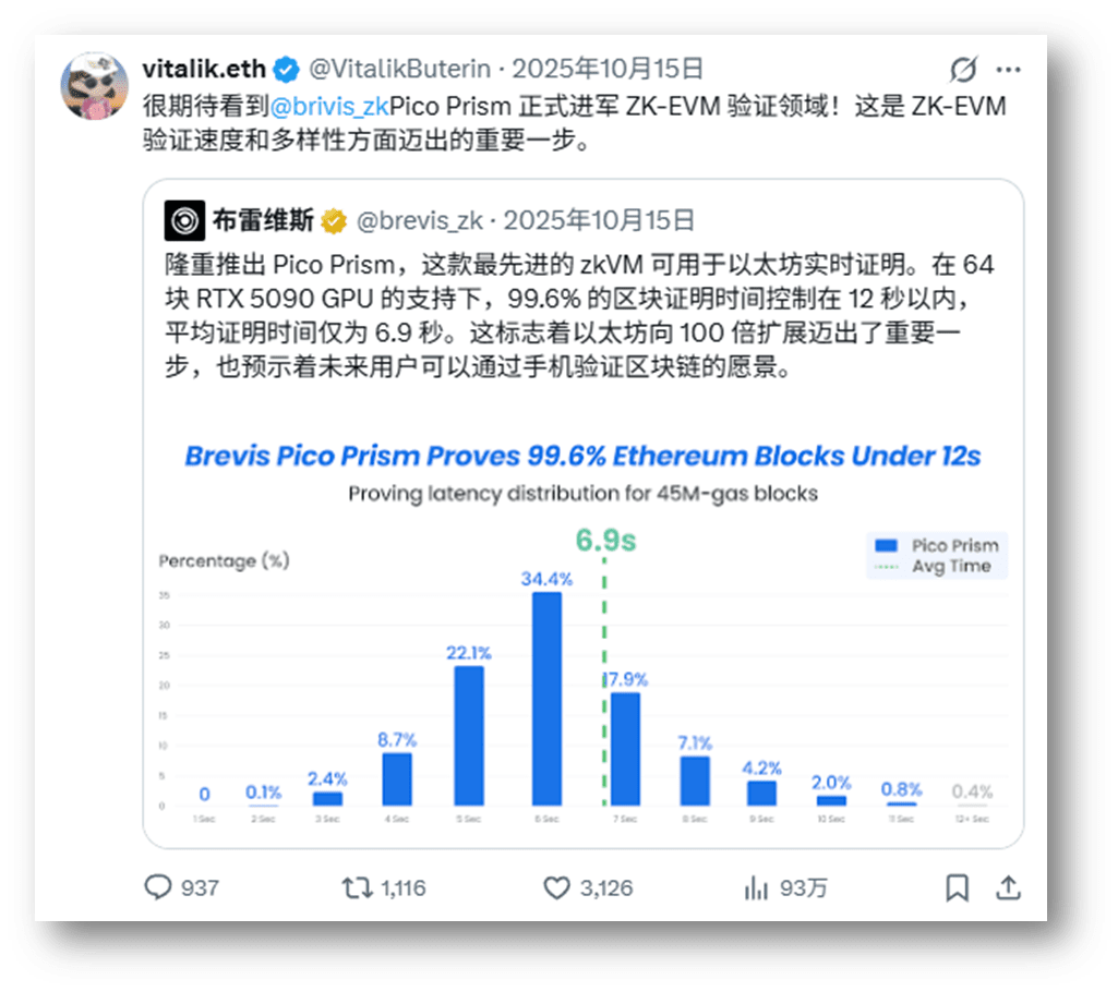 El respaldo de V (Vitalik): V, el fundador, ha elogiado públicamente la tecnología Pico Prism de Brevis. En el círculo técnico, esto representa "legitimidad".