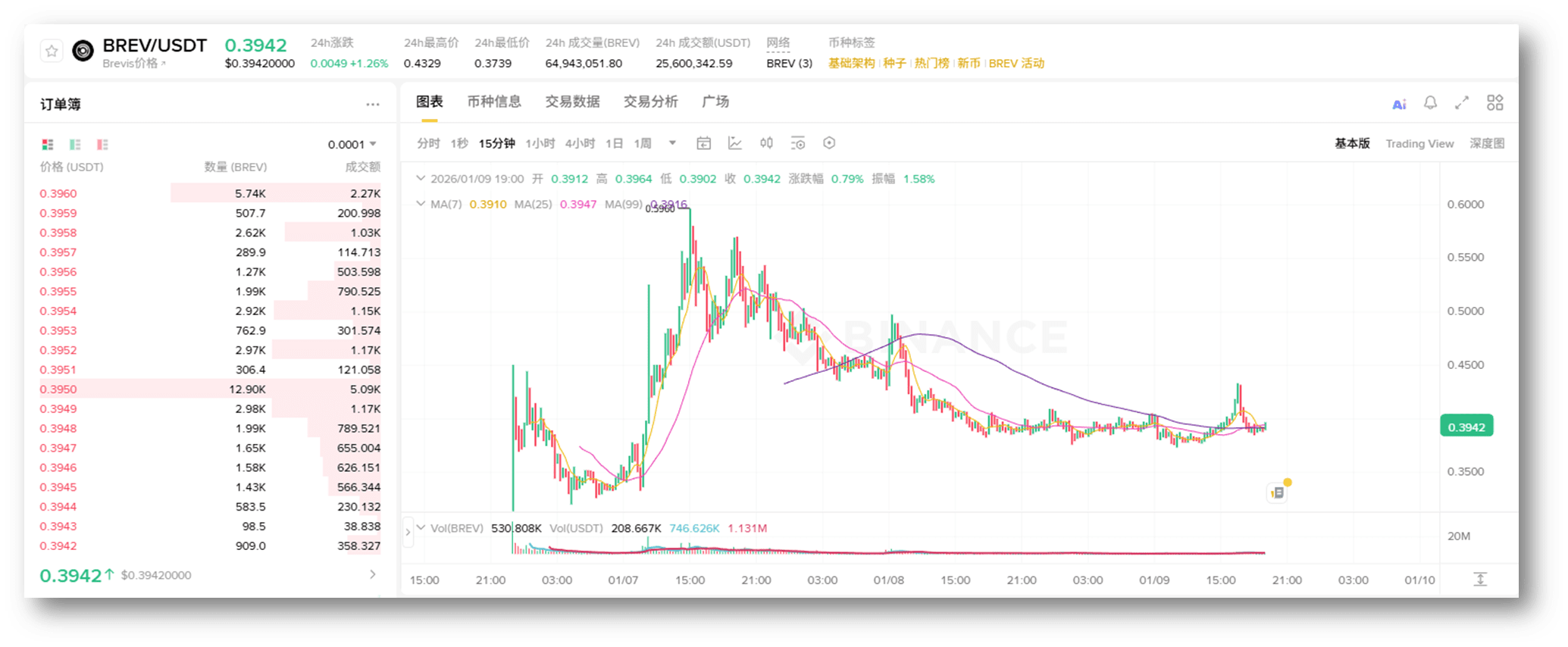Hace exactamente dos días que BREV se lanzó en Binance. Viendo cómo la gráfica de velas oscila alrededor de 0.4U, muchos compañeros se preguntan: "¿Jefe, tiene futuro este token? ¿Debería venderlo o añadir más?"