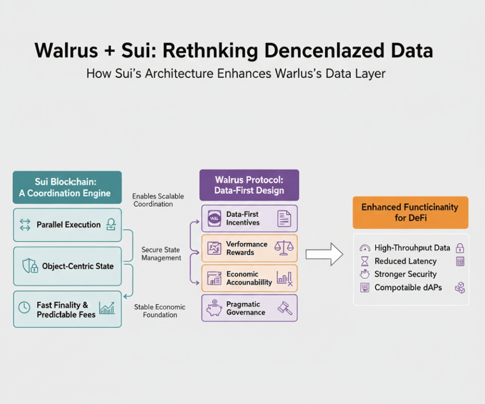 La verdadera mejora que Sui aporta a Walrus es la moderación. Al desviar la complejidad de la ejecución, la volatilidad de tarifas y la coordinación del estado hacia un diseño de cadena de bloques pensado para escalar, Walrus puede mantenerse enfocado en su misión principal: hacer que los datos sean verificables, disponibles y económicamente sostenibles.