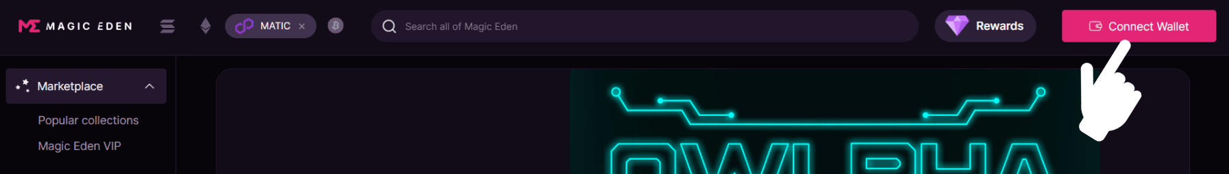 1. Заходим на сайт MagicEden, авторизуемся с помощью любого удобного вам кошелька 👇