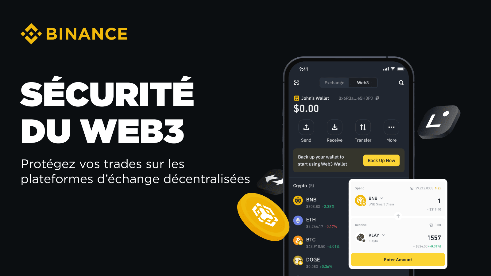 Les DEX fonctionnant par le biais de pools de liquidités, une faible profondeur peut entraîner l’exécution de votre trade à un taux moins favorable. Déterminer des paramètres de tolérance au slippage peut aider à gérer ce problème, mais trouver le bon équilibre est essentiel. Si vous la fixez trop haut, votre trade risque d’être exécuté à un taux bien inférieur à celui prévu et si vous la fixez trop bas, le trade risque d’échouer complètement. Pour optimiser le slippage, il faut examiner le compromis entre l’exécution et le prix. Avec des tokens très volatils ou illiquides, vous pouvez avoir besoin d’une tolérance légèrement plus élevée pour réaliser le trade. Cependant, vous devez toujours être conscient de la perte maximale que vous êtes prêt à accepter. Commencez avec une valeur inférieure et ajustez-la uniquement si nécessaire. Pour ajuster les paramètres de slippage sur Binance Wallet, cliquez sur [Slippage] et sélectionnez [Personnaliser] pour définir la valeur souhaitée. La page de swap sera automatiquement mise à jour pour indiquer le nouveau montant minimal de tokens que vous recevrez.